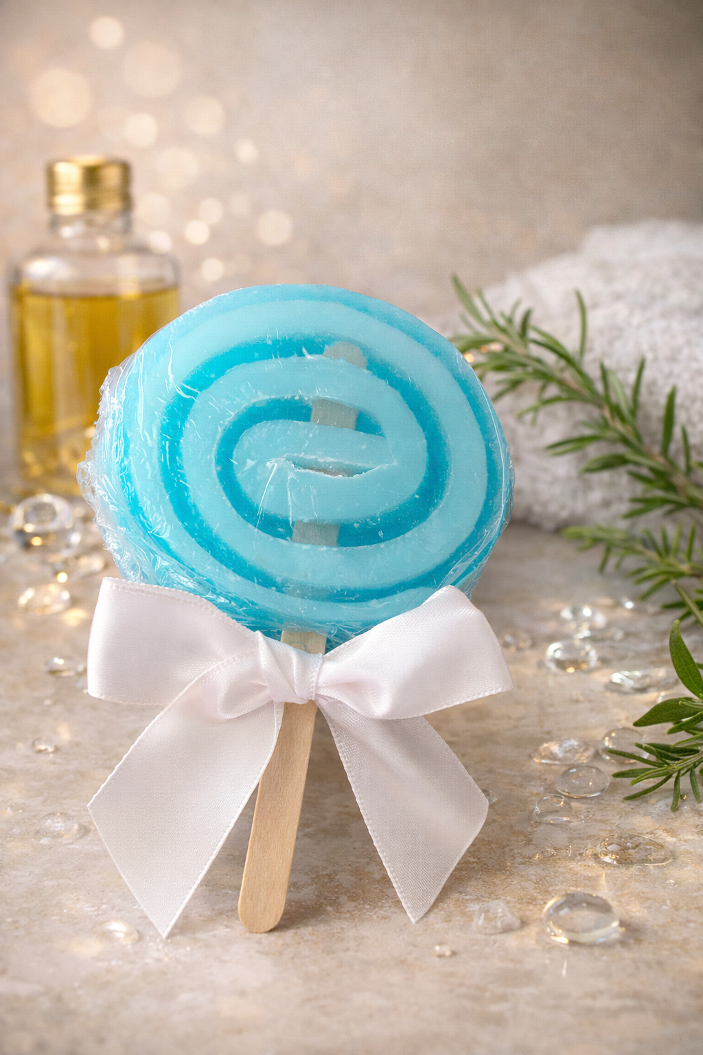 🧼savon roulé JOJOBA en forme de sucette au parfum océan .